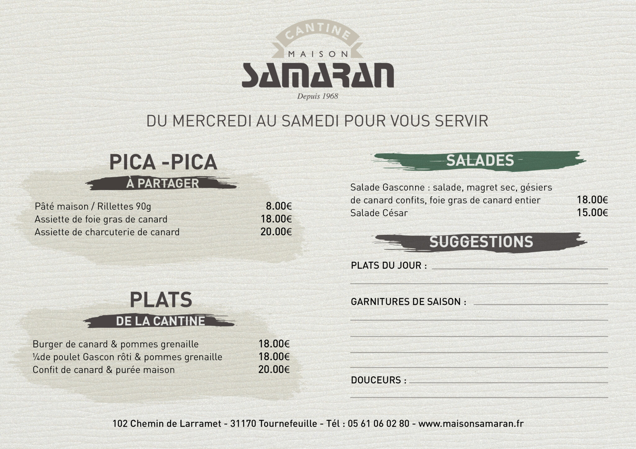 À deux pas du lac et du parc de La Ramée, la boutique Maison Samaran de Tournefeuille vous plonge au cœur du terroir du Sud-Ouest. Dans une ambiance chaleureuse et conviviale, découvrez foies gras, confits, cassoulets et terrines, préparés avec soin selon notre savoir-faire traditionnel. Une expérience gourmande à emporter chez vous, entre qualité, authenticité et passion du goût.
