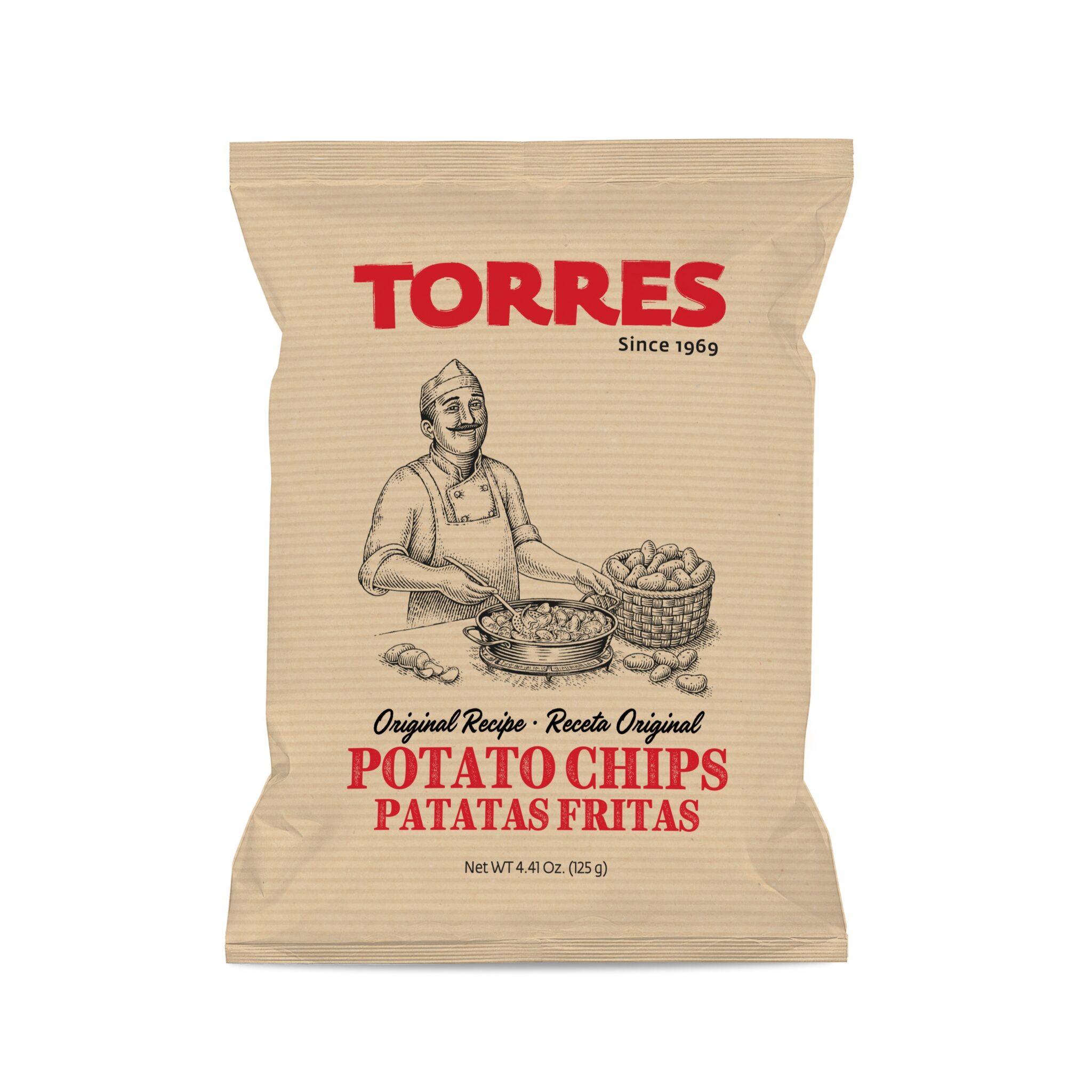 Patatas Torres sélectionne uniquement des pommes de terre de qualité supérieure, issues de cultures rigoureusement contrôlées. Ensuite, l’huile de tournesol apporte une cuisson légère et homogène, tandis que le sel sublime naturellement les arômes des tubercules. Aucun additif, aucun colorant, ni conservateur n’entre dans la recette, pour garantir un produit authentique et sain. De plus, le sachet kraft rétro souligne le caractère traditionnel de ces chips et leur engagement envers l’artisanat.