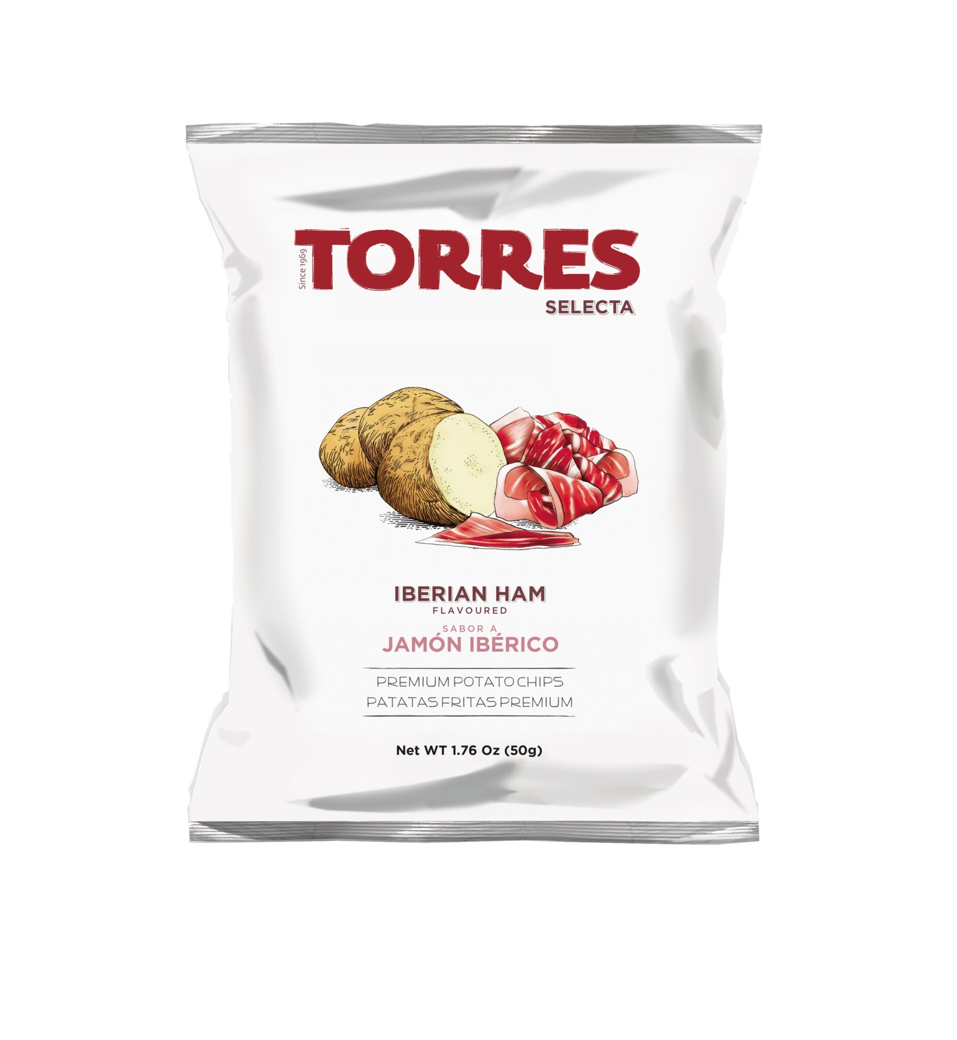 Découvrez l’authenticité de l’Espagne avec les Chips au Jambon Ibérique signées Patatas Torres. Depuis 1969, cette maison barcelonaise fabrique des chips de qualité supérieure, en respectant la tradition artisanale. Chaque chips est conçue sans conservateur, ni colorant, ni arôme artificiel.