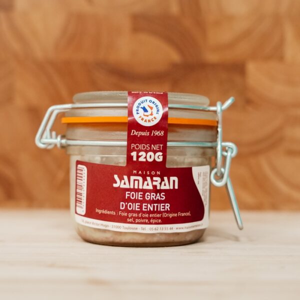 Le foie gras d’oie entier – 120g, incarne toute la noblesse de la gastronomie française. Élaboré dans notre atelier toulousain avec le plus grand soin, il séduit par son goût délicat et sa texture fondante. Contrairement au foie gras de canard, il se distingue par une saveur plus douce, subtile et raffinée, idéale pour les amateurs de sensations gustatives élégantes. Chaque morceau provient d’un foie rigoureusement sélectionné afin de garantir une qualité irréprochable.