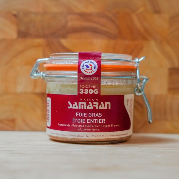 Chez Maison Samaran, nous perpétuons un savoir-faire familial. Chaque foie est travaillé avec minutie : sélection, assaisonnement et cuisson respectent les traditions les plus exigeantes. Ainsi, nous proposons un foie gras qui conjugue authenticité, raffinement et générosité. Grâce à ce procédé artisanal, le foie gras d’oie entier conserve toutes ses qualités aromatiques et son moelleux incomparable.