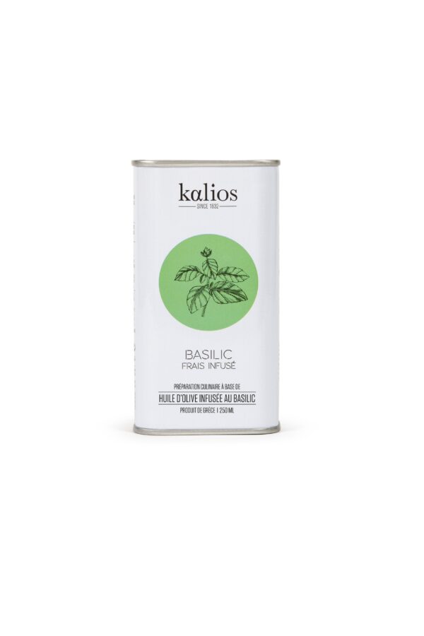 Découvrez l’élégance méditerranéenne avec l’huile d’olive infusée au basilic frais de Kalios. Issue de la variété Koroneiki, récoltée tardivement pour une intensité maximale, cette huile révèle toute la fraîcheur et la subtilité du basilic. Non chauffée et sans ajout d’arôme artificiel, elle conserve toutes ses qualités organoleptiques, offrant un parfum naturel et délicat.