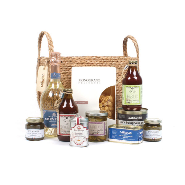 La dolce Vita – Coffret n°20, de la Maison Samaran invite à un délicieux voyage entre la chaleur du Sud-Ouest et la douceur italienne. Conçu pour les amoureux de gastronomie méditerranéenne, il mêle les saveurs authentiques du canard à la finesse des recettes italiennes traditionnelles. Présenté dans une élégante corbeille de jonc tressé, il évoque les repas ensoleillés et les moments de partage autour d’une belle table.