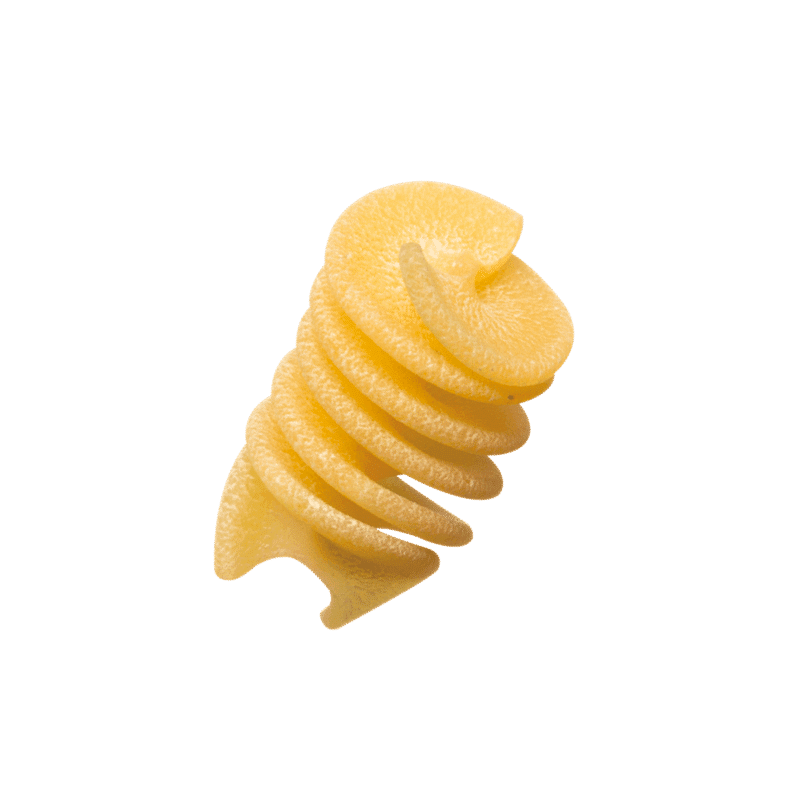 Le blé est cultivé dans les Pouilles, puis moulu frais chaque matin. L’eau pure des Dolomites complète la pâte, garantissant authenticité et qualité artisanale. La forme spiralée des Spiralottis permet de capturer les sauces et d’exprimer pleinement la saveur rustique du blé.