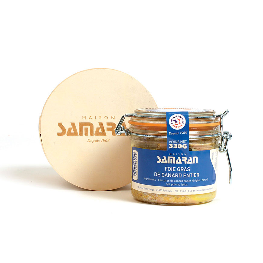Solo 330 – Coffret n°6 incarne l’élégance et la simplicité à la française. À travers cette création, la Maison Samaran célèbre son produit phare : le foie gras de canard entier, cuisiné avec soin dans son conserverie toulousaine. Chaque coffret renferme un joyau du terroir, préparé à partir de canards issus de nos éleveurs partenaires, gage d’une qualité constante et d’un goût authentique.
